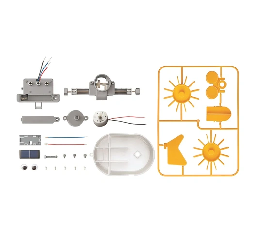 Material | Clear plastic chassis, solar panel, small DC motor, gears |