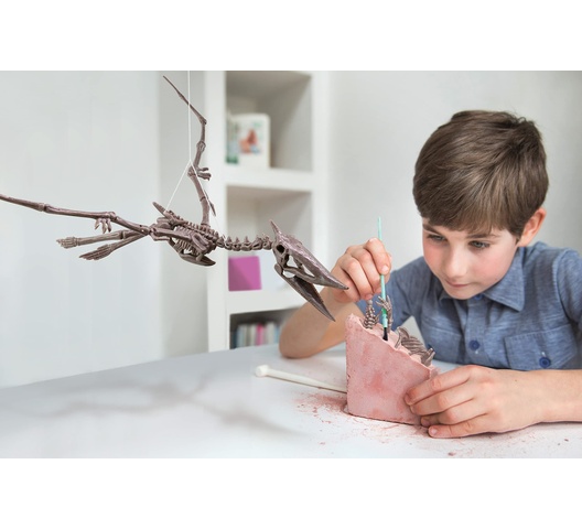 Care & Maintenance | Once excavation is complete, gently brush away plaster dust and allow the pteranodon model to air dry. Carefully assemble the pieces following the included instructions and display indoors, away from heat and direct sunlight. |