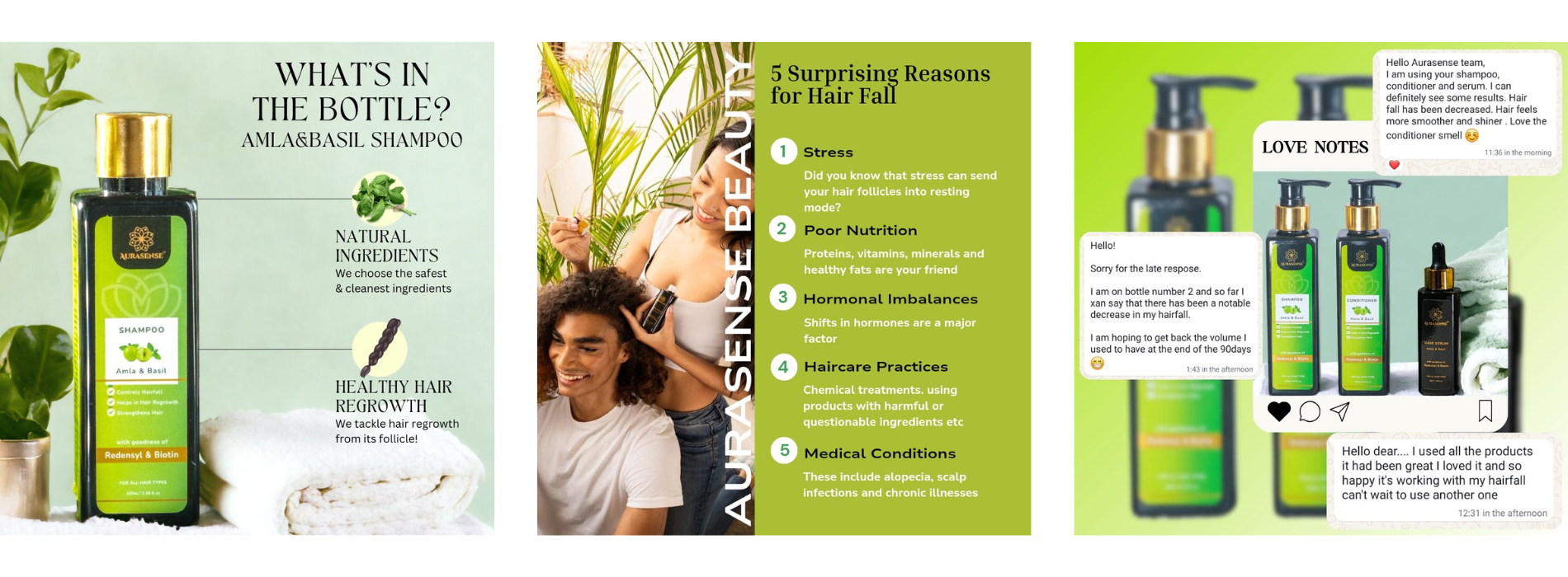 Aurasense's sulphate-free Amla & Basil Hair Shampoo is a gentle yet effective solution for cleansing the scalp and promoting healthy hair growth. Unlike traditional shampoos that rely on harsh sulphates, the Aurasense formula is designed to maintain the scalp’s natural balance while removing dirt, oil, and buildup. With the power of Amla and Basil, it helps stimulate the roots and improve blood circulation, while Biotin and Redensyl work together to reduce thinning and nourish follicles. Ideal for all hair types and suitable for daily use, this shampoo creates a healthier environment for hair to thrive—leaving it feeling clean, strong, and refreshed after every wash.