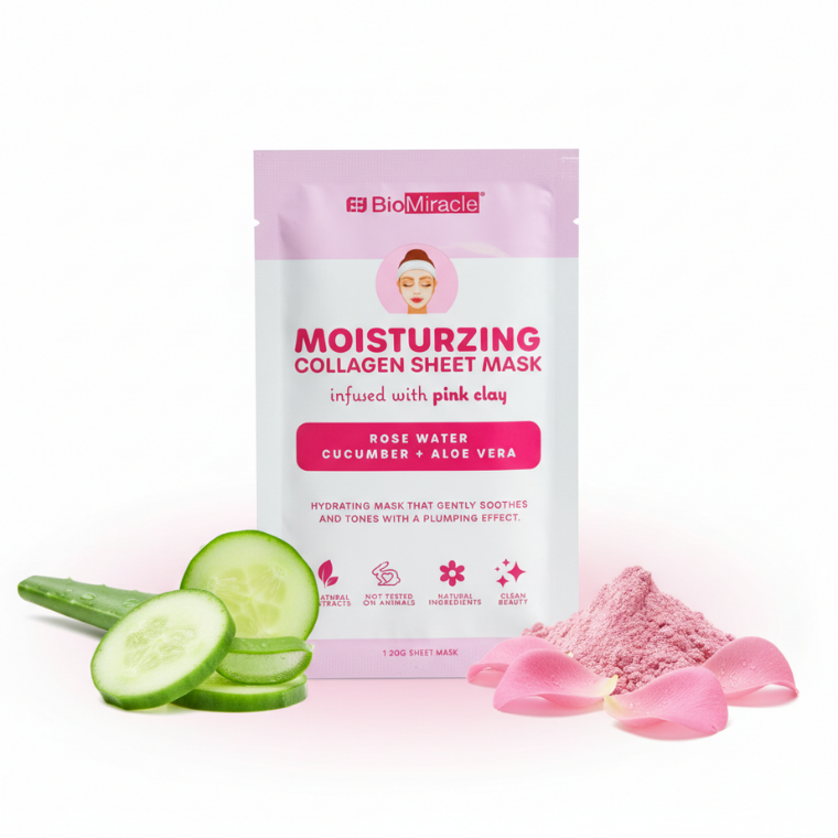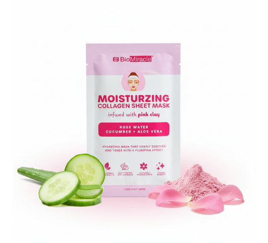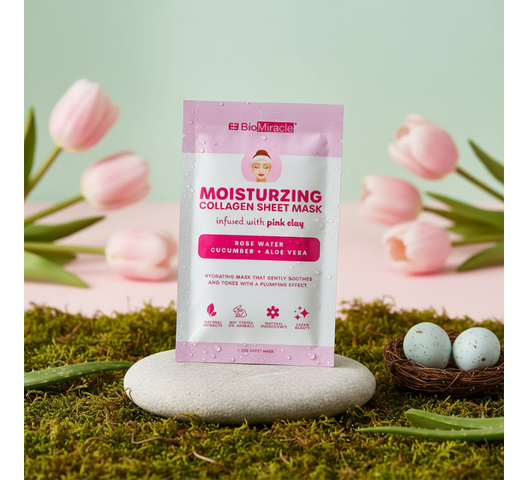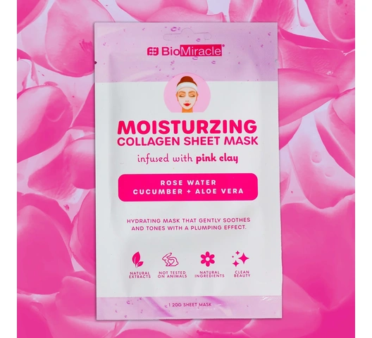 BioMiracle Moisturizing Collagen Sheet Mask Infused With Pink Clay