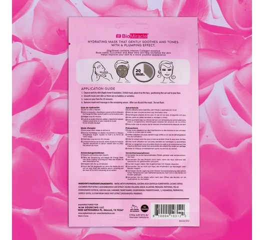 Moisturizing Collagen Sheet with Pink Clay, Rose Water, Cucumber, and Aloe Vera gently soothes and tones with a plumping effect. Helps improve your skin to a more youthful revitalizing appearance.