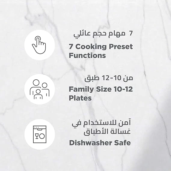 7 Preset Cooking Functions - Select from pre-programmed settings designed for a variety of dishes, removing the guesswork from meal preparation.