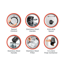 1.5L Large pulp container capacity for easy pulp disposal