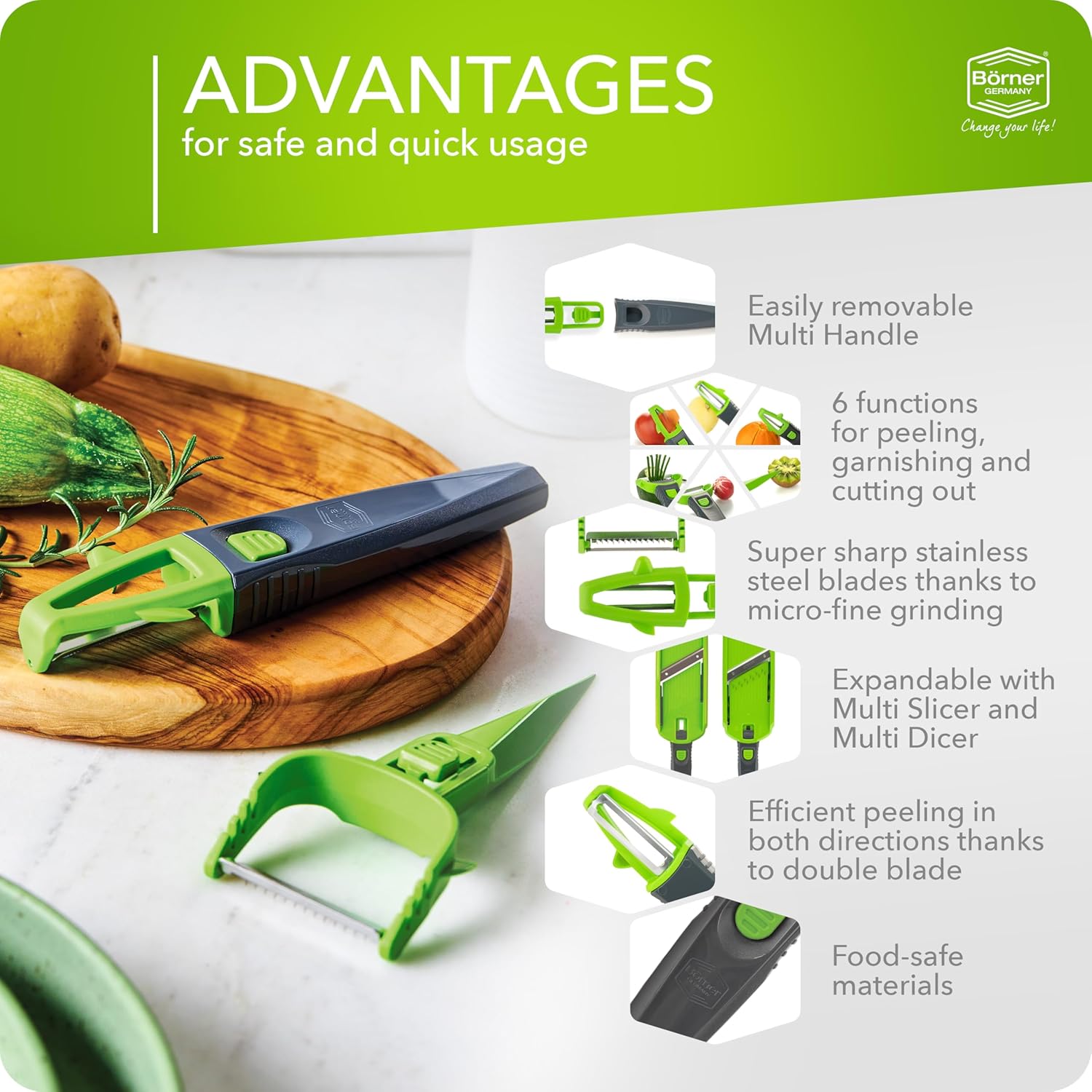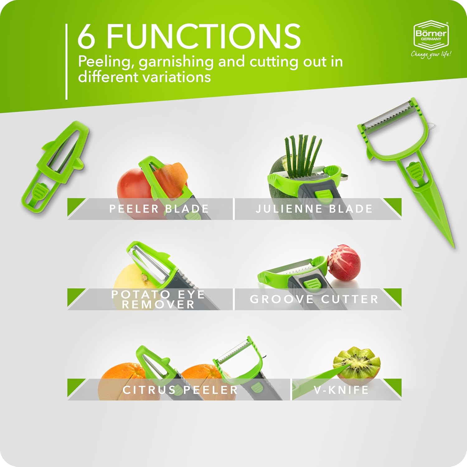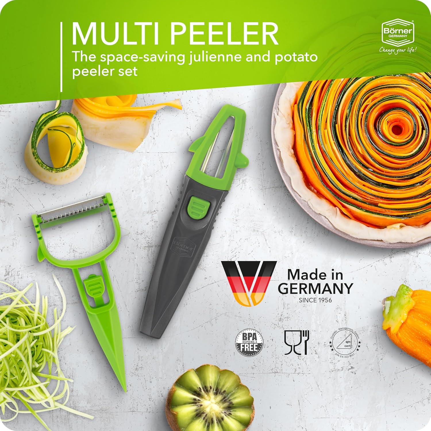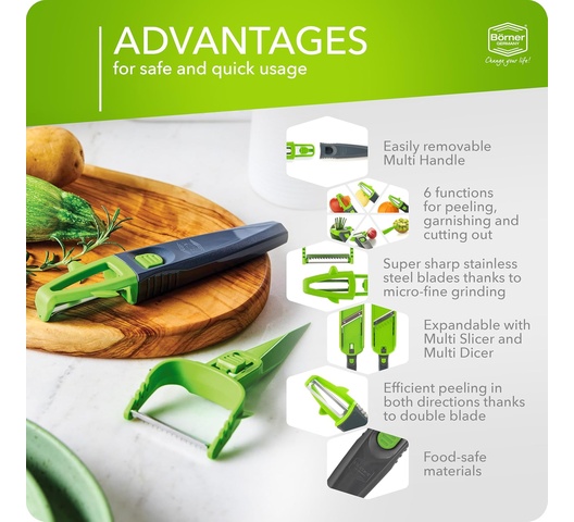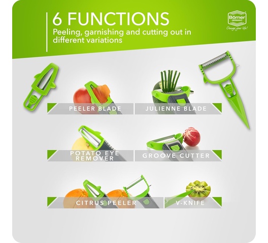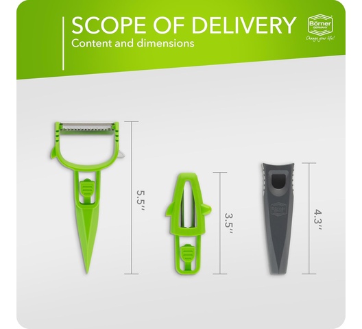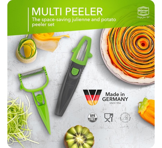 Börner Multi Peeler 3-Piece Set – Peeler & Julienne Cutter – Green & Grey