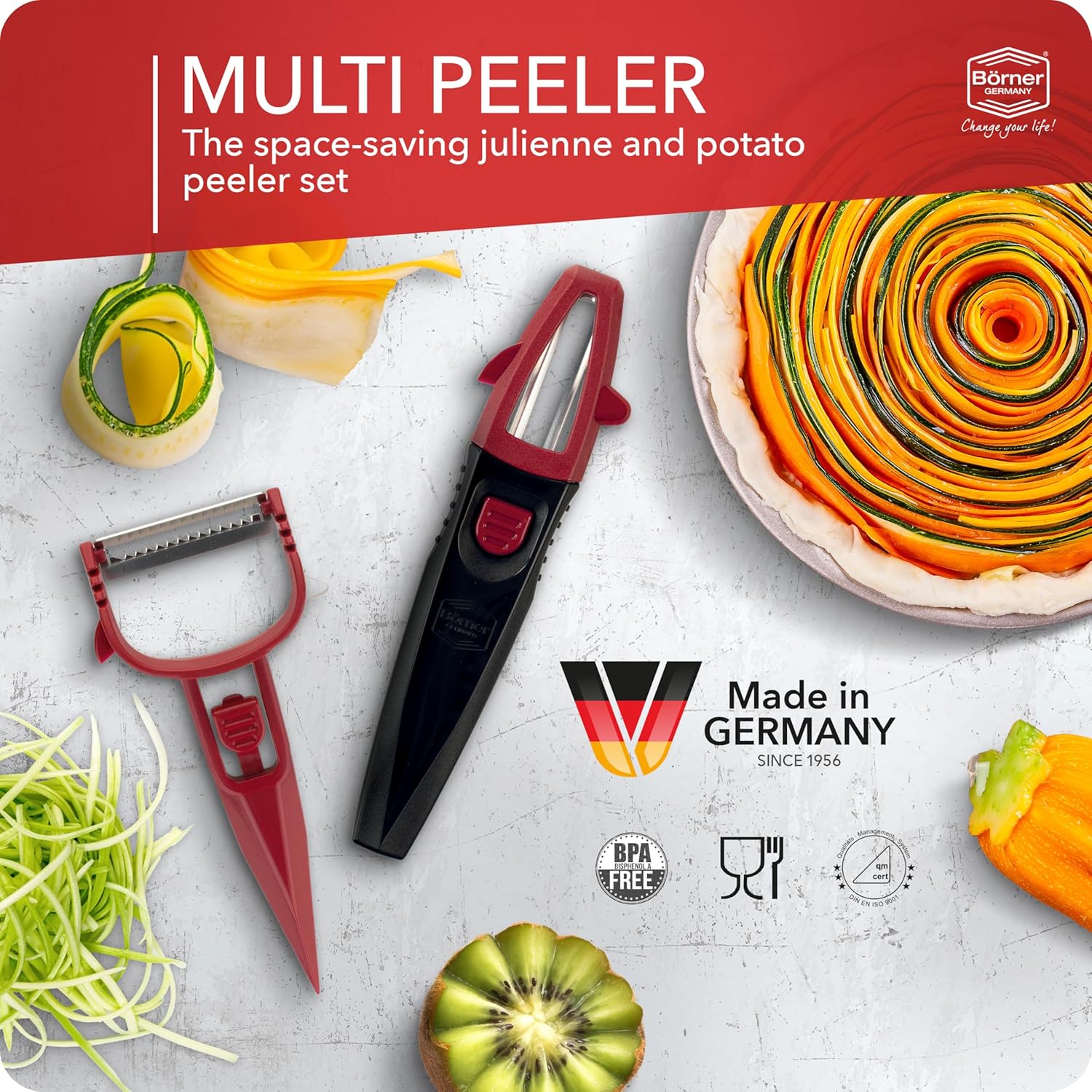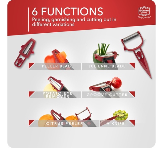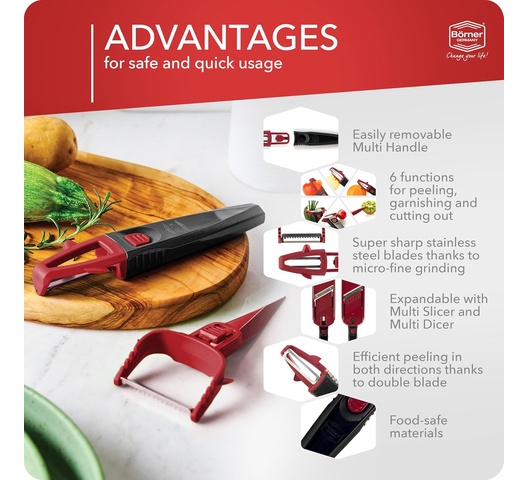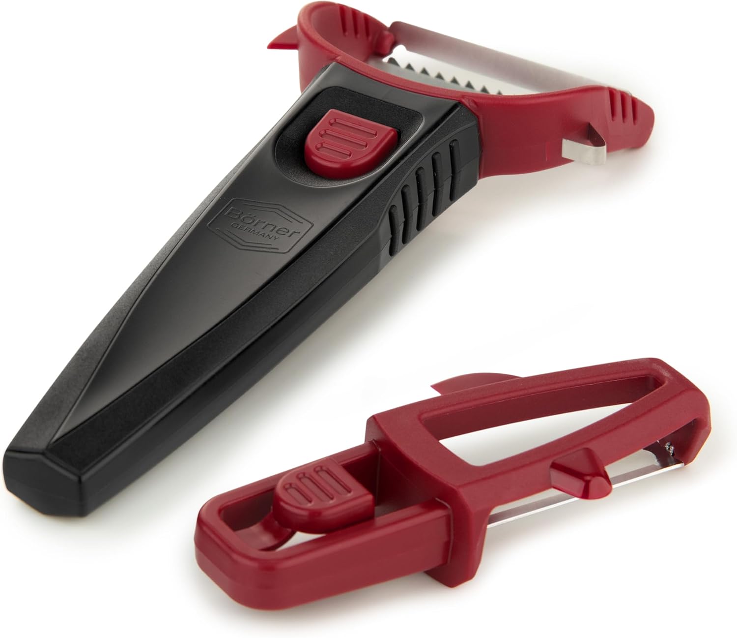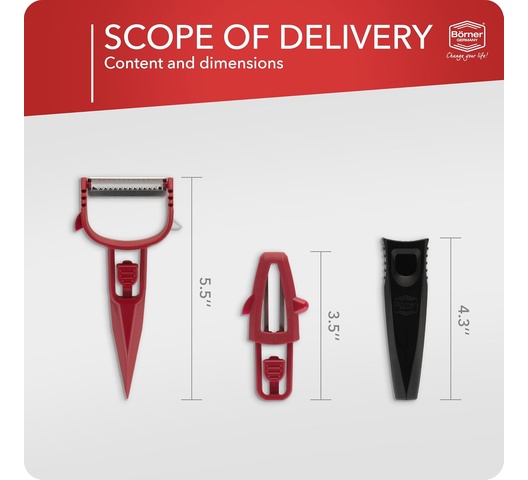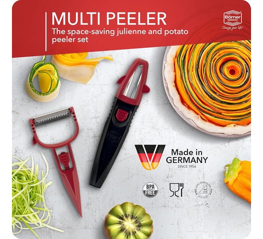 Börner Multi Peeler 3-Piece Set – Peeler & Julienne Cutter – Red & Black