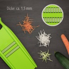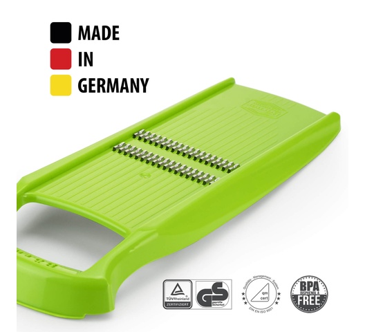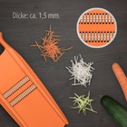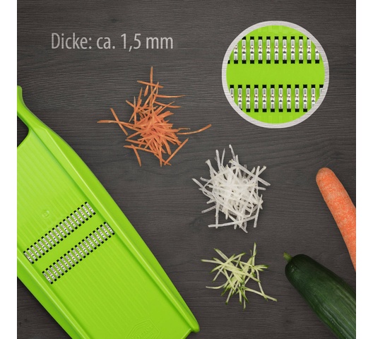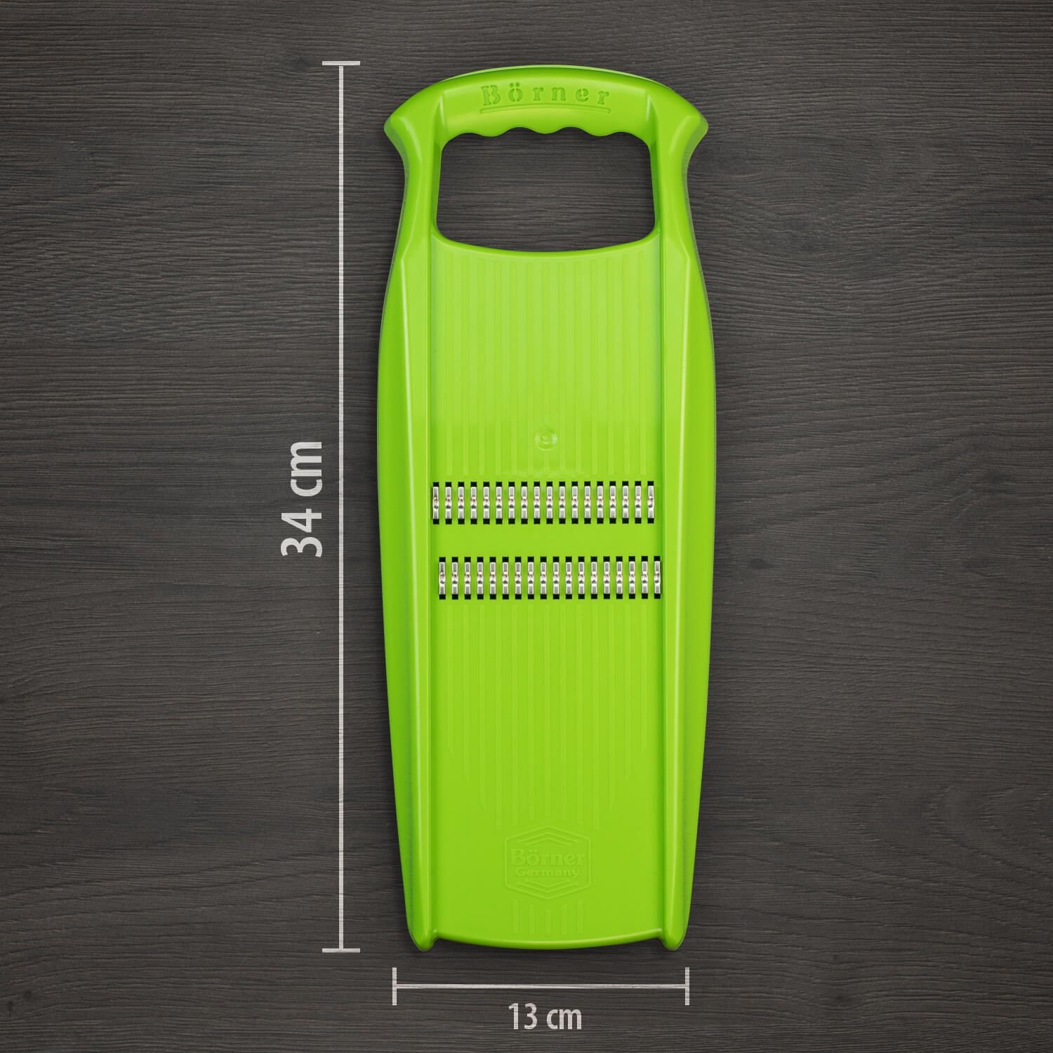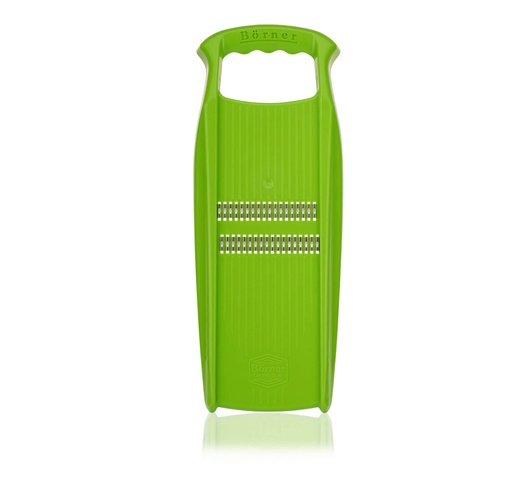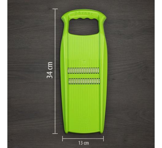 The Börner Roko PowerLine is a specialized grater for quickly and easily creating fine, thin julienne strips from various fruits and vegetables. Its double-sided sharpened blades enable rapid processing of root vegetables, cheese, or chocolate, making it ideal for raw vegetable salads and Asian cuisine. This essential kitchen tool ensures that even the hardest vegetables are no problem for preparing delicious dishes.