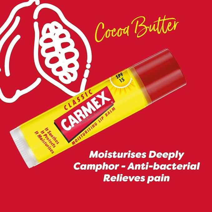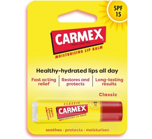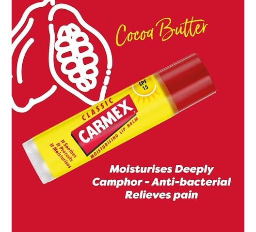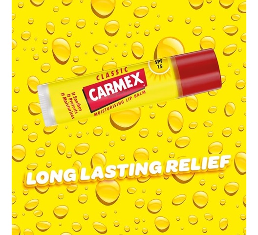 The Carmex Stick (4.25 g) is the classic Carmex formula in a twist-up stick format. It a medicated relief, in a hands-free, portable format that’s easy to apply on the go, protecting lips from dryness while being convenient for frequent use.