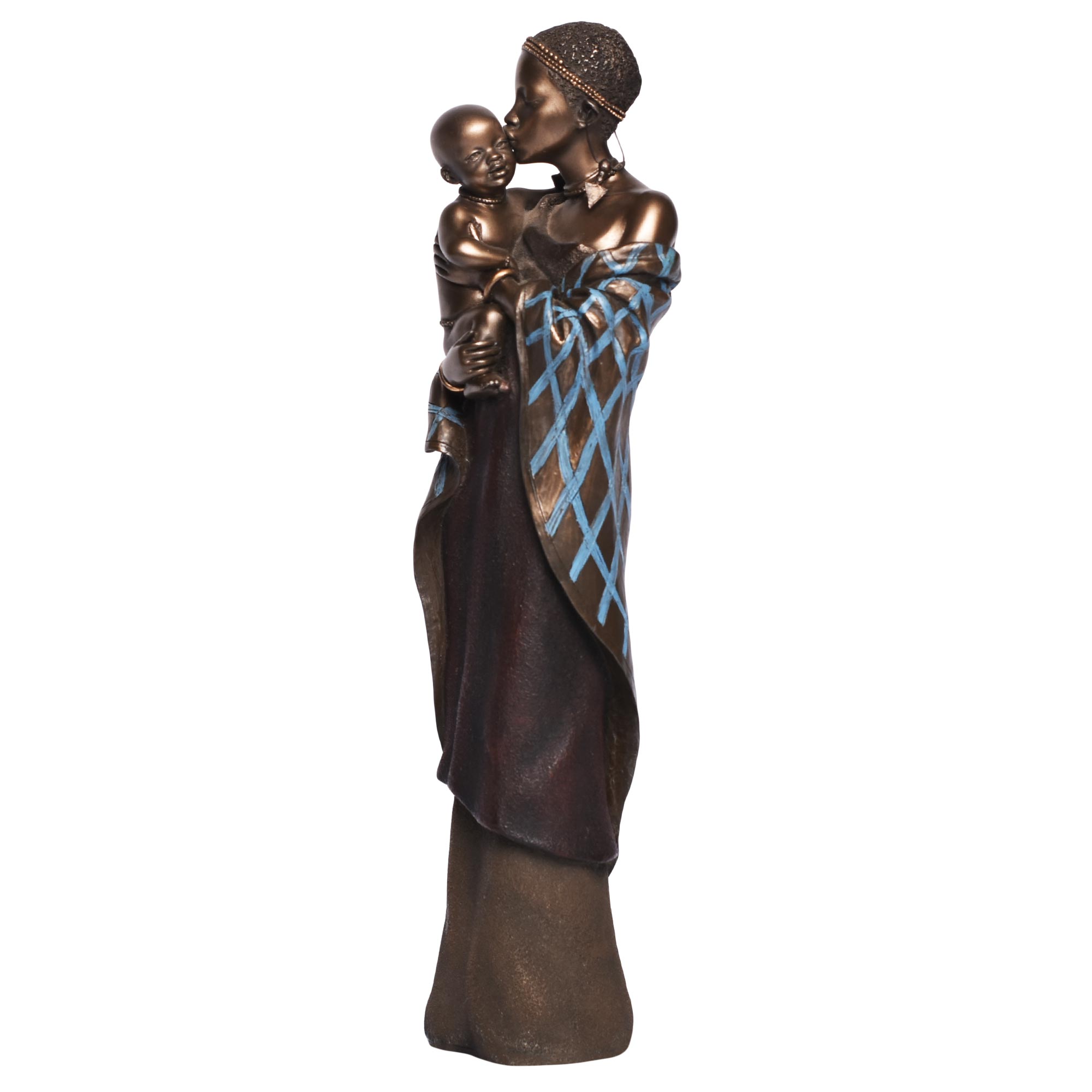 Cold-Cast Bronze African Figurines: Nina Busu, A Mother's Kiss