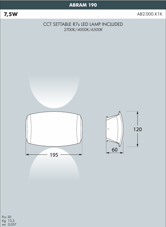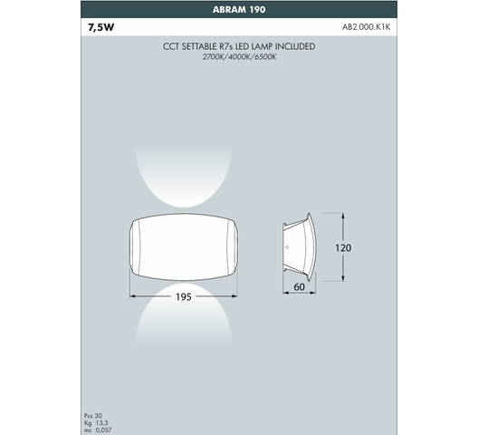 What's included | 1 x Abram 190 wall light unit (main body, clear diffuser, R7s lampholder, silicone gasket) |