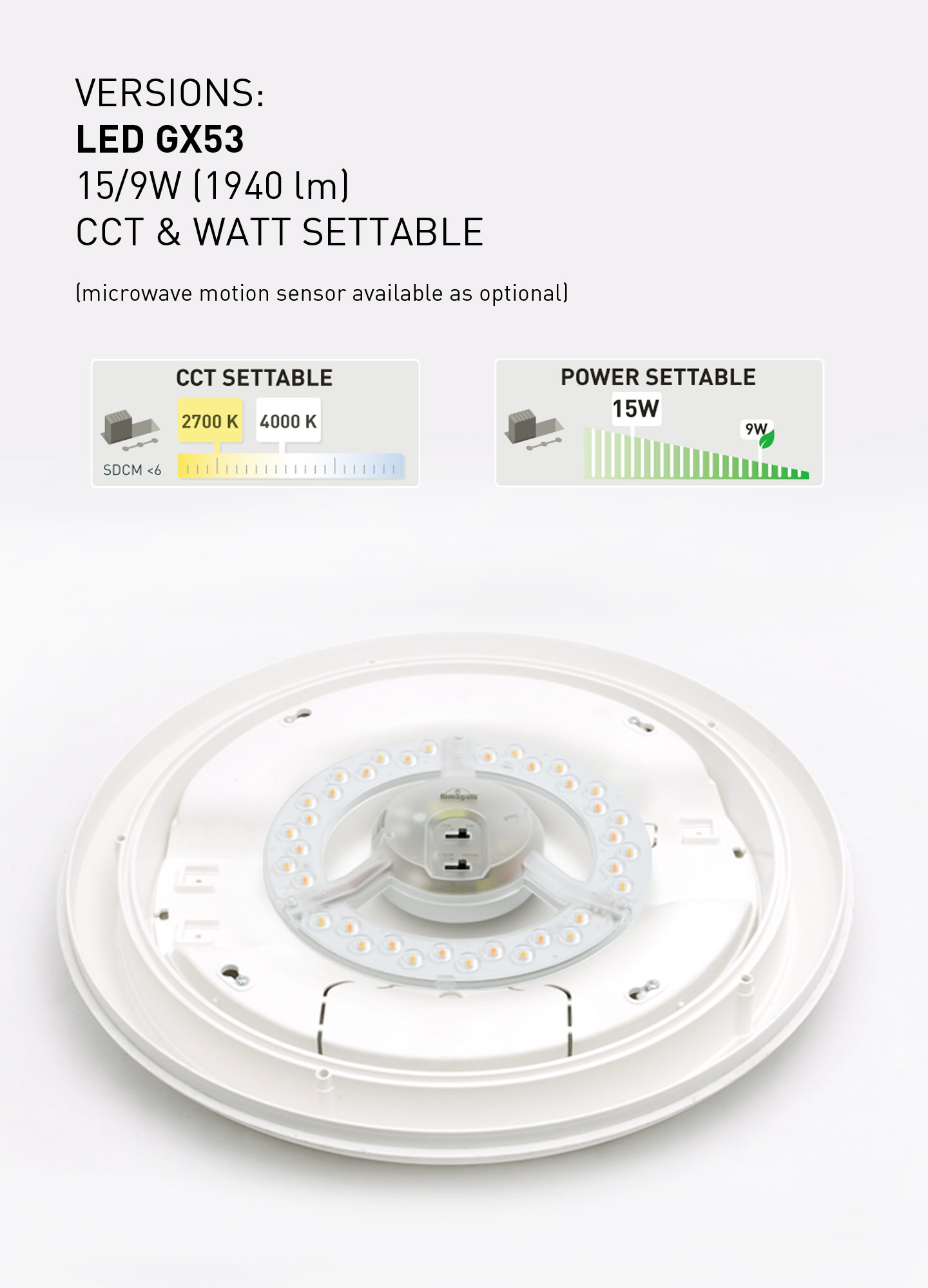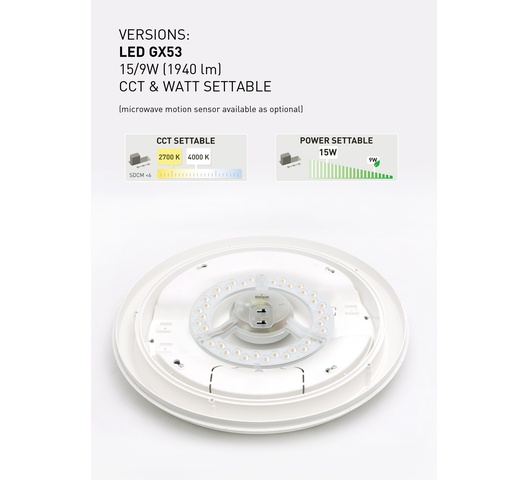 Energy-efficient lighting – Compatible with modern, low-energy GX53 LED bulbs (not included) for bright, cost-effective light.