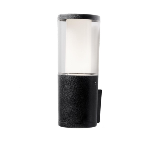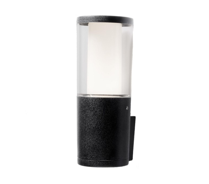 Sleek cylindrical wall light – Offers a modern, minimalist profile for contemporary homes and landscapes.