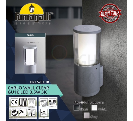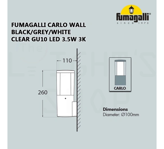 What's included | 1 x Carlo wall light unit (main resin body, clear outer diffuser, opal inner diffuser, GU10 lampholder) |