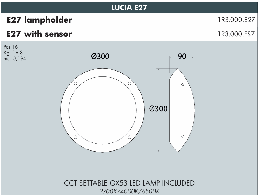 What's included | 1 x Lucia light fitting with an E27 lampholder. |