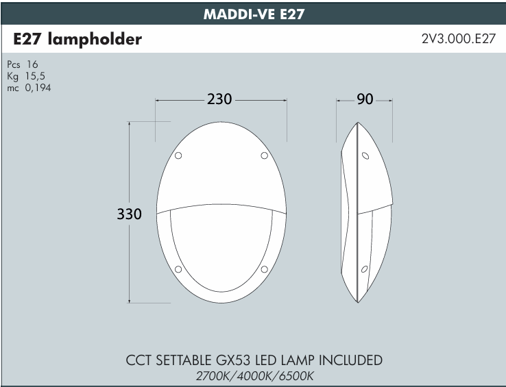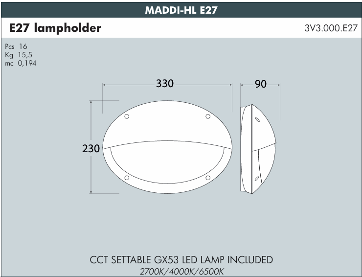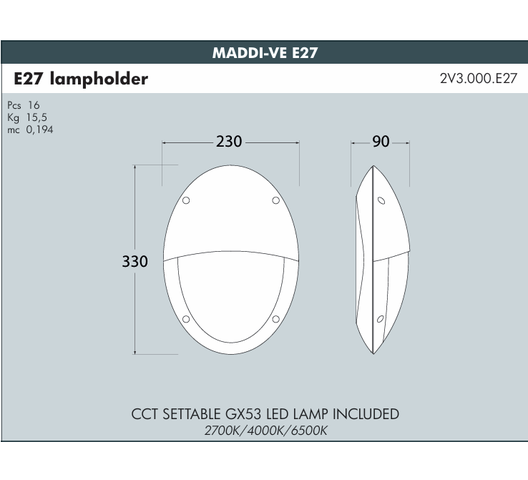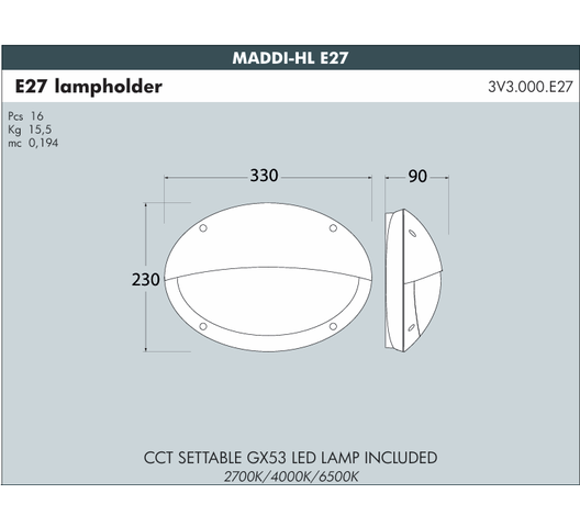Type | Wall Light, Ceiling Light, Pole Light, Oval Luminaire. |