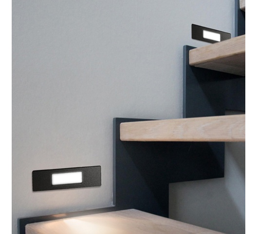 Installation & Assembly Information | Slim and compact recessed wall lamp with rectangular shape. Designed for downwards directed light emission. No visible screws for a clean finish. |
