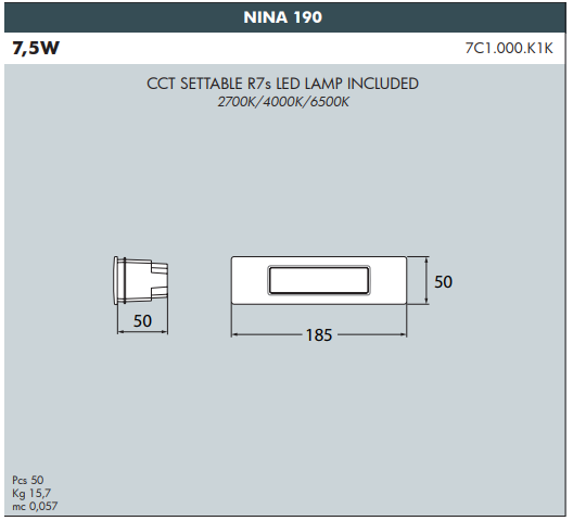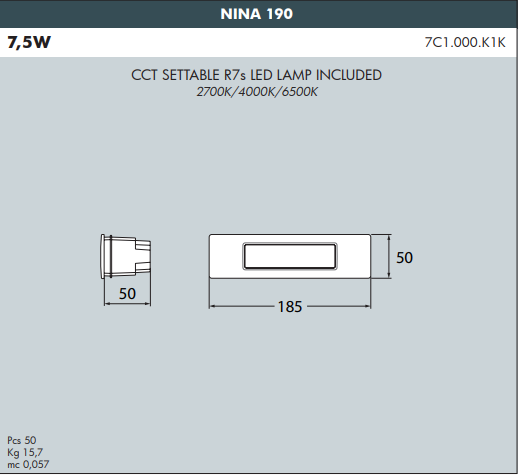 Other Specifications | Fully recyclable. "Future-proofed" luminaires (easy to upgrade performances with latest technology developments due to standard R7s holder). Slim and compact design with reduced depth. |