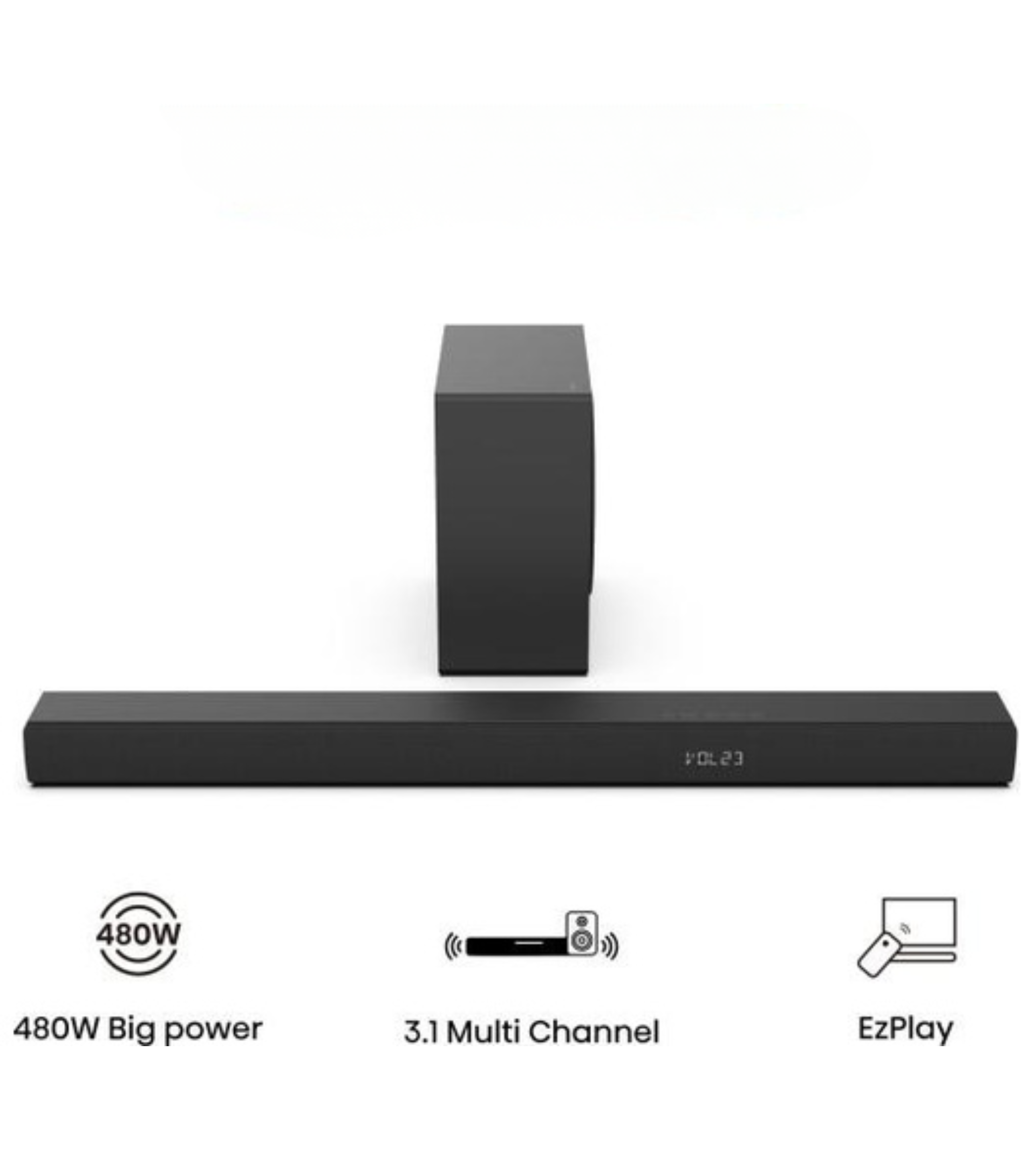 Immersive sound quality – 3.1 Channel Audio: Includes a soundbar and a subwoofer