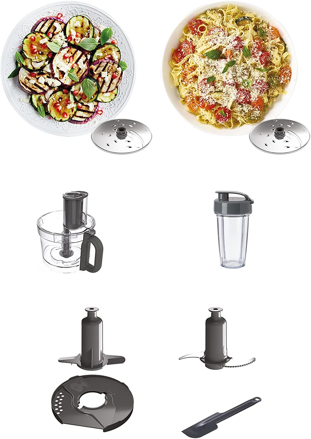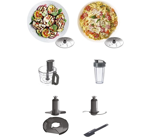 | Removable components | Bowls, Blender Jug, Slicing Discs, Whisk |