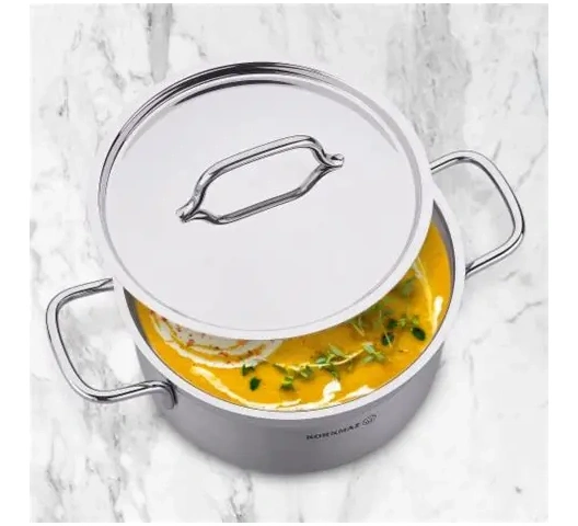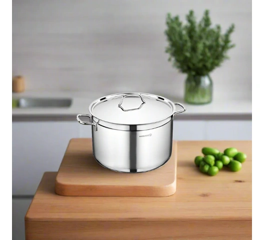An extra-large, deep casserole from the Alfa series, ideal for catering or large family meals. Its robust stainless steel body and heavy-duty capsule base provide durability and outstanding cooking performance.