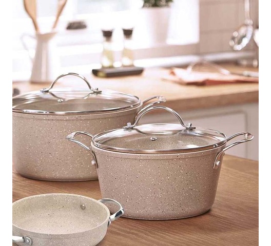 A durable and non-stick casserole from the Granita series. Its aluminum body with a granite coating ensures fast and even heating. The excellent non-stick properties make it perfect for cooking with less oil and for easy cleaning.