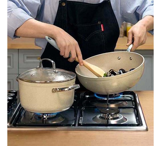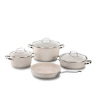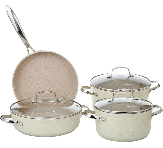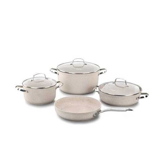 A comprehensive cookware set from the Granita series, featuring a high-quality granite-like non-stick coating. The set provides a variety of pots and a frypan for all your cooking needs, designed for healthy cooking with minimal oil.