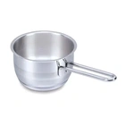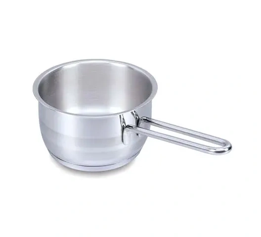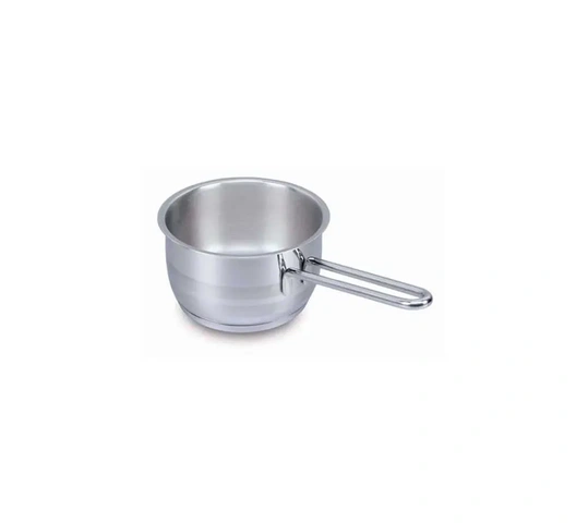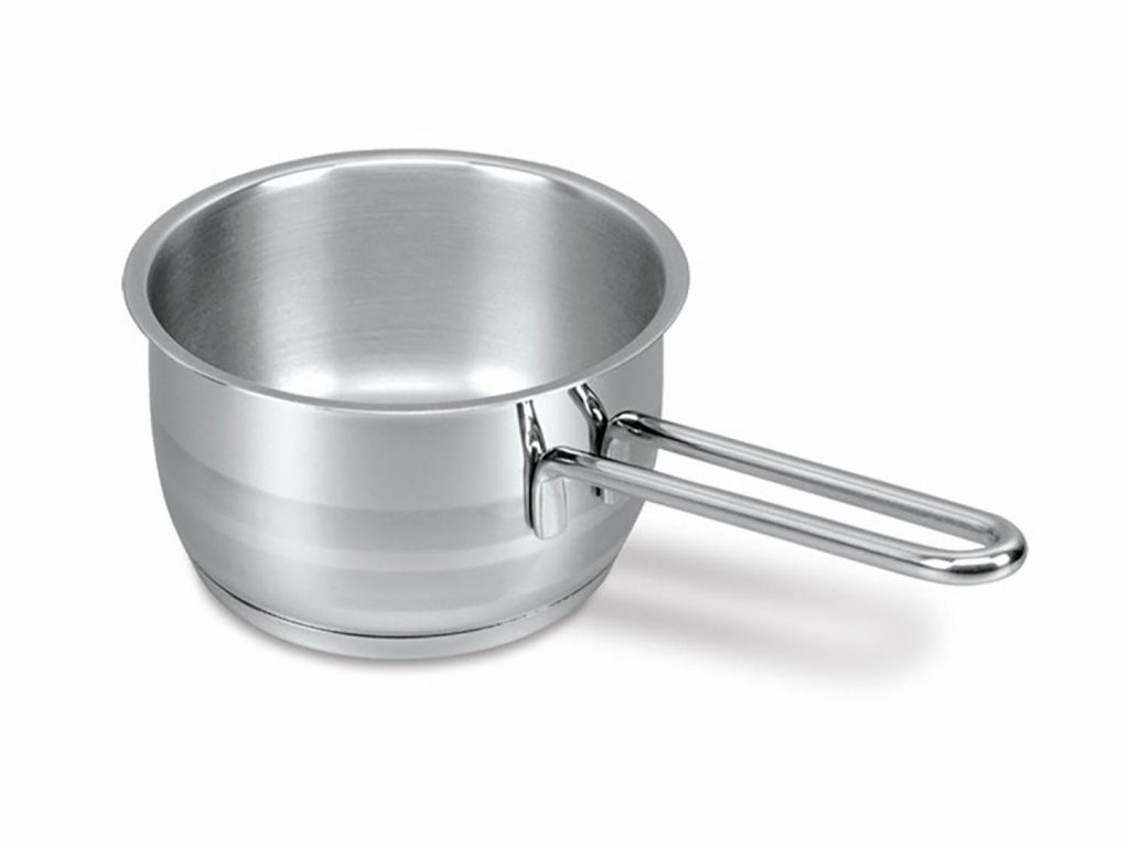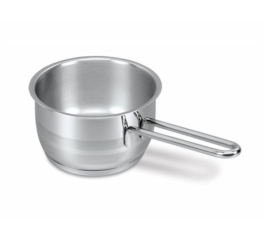 A small, stylish milk pan from the Astra series, featuring a Triplex heavy-bounded capsule bottom for even heat conduction. Its size and design are ideal for heating milk or preparing small quantities of sauces.