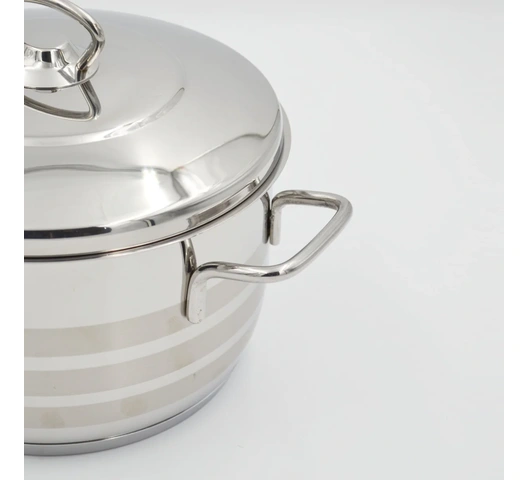 A compact casserole from the Astra series, featuring a high-quality stainless steel body and a capsule base for excellent heat distribution. It is a stylish and functional addition to any kitchen.