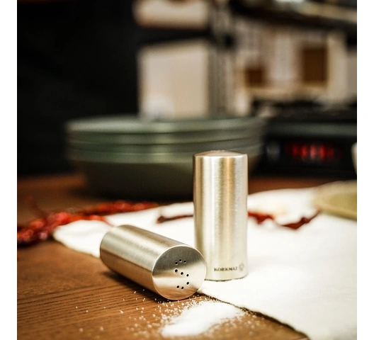 This elegant set features a stainless steel body with a matte satin finish, designed to complement modern table settings. Made from 18/10 Cr-Ni stainless steel, it offers durability and a sleek appearance. Each shaker has a compact height of 7.5 cm and a 72 ml capacity. The set is BPA-free and manufactured in Turkey. Ideal for everyday use or stylish entertaining.