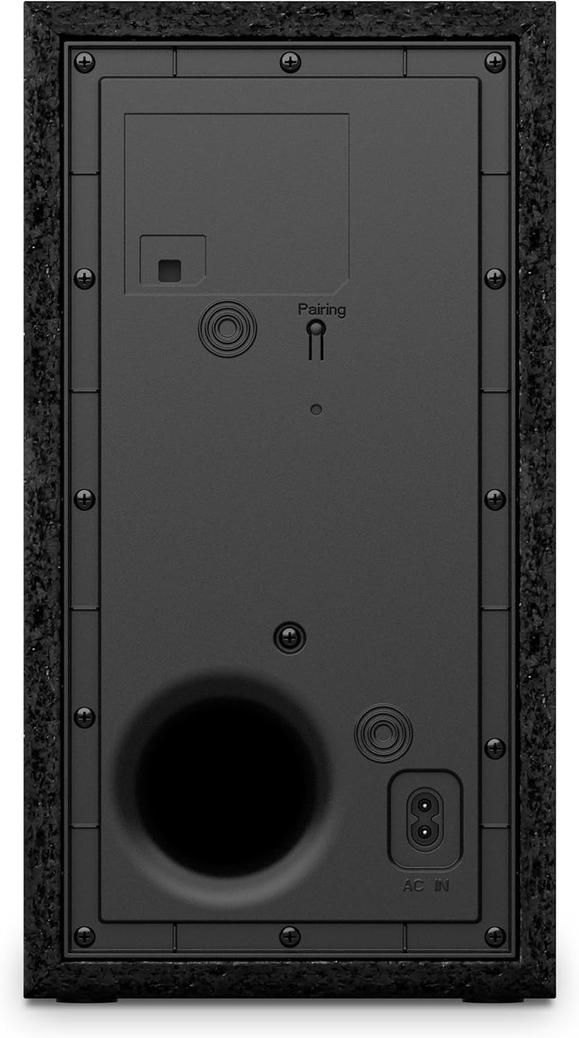 New design and wireless subwoofer that creates a neat and tidy space – Solid material and metal grill design without worrying about dust or contamination & wireless subwoofer for easy installation