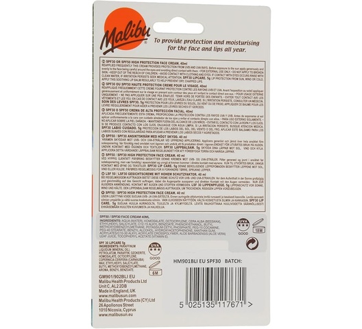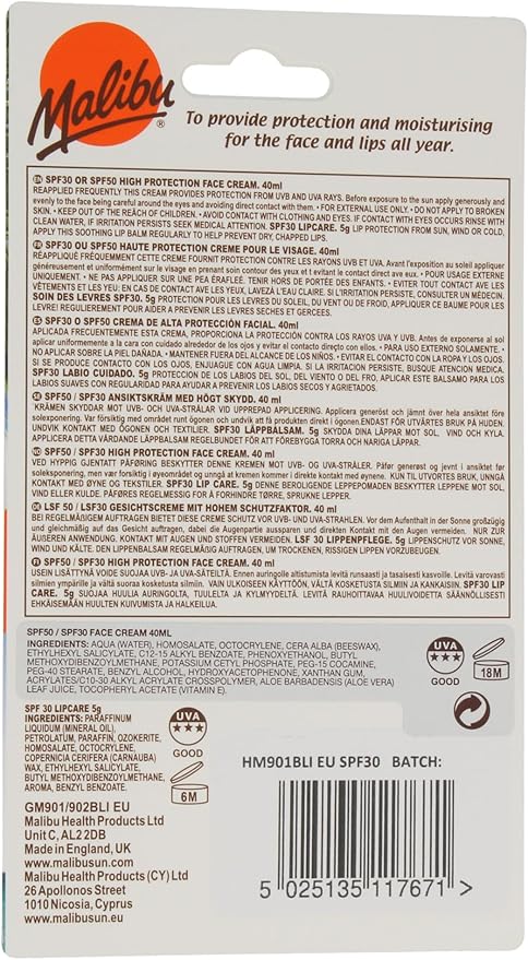 Malibu Face Cream SPF 30, 40ml + Lip Balm SPF 30, 5g