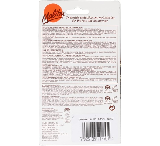 Malibu Face Cream SPF 50, 40ml + Lip Balm SPF 30, 5g