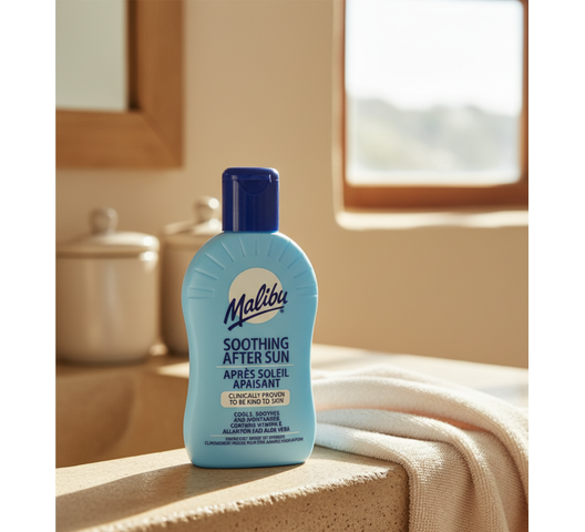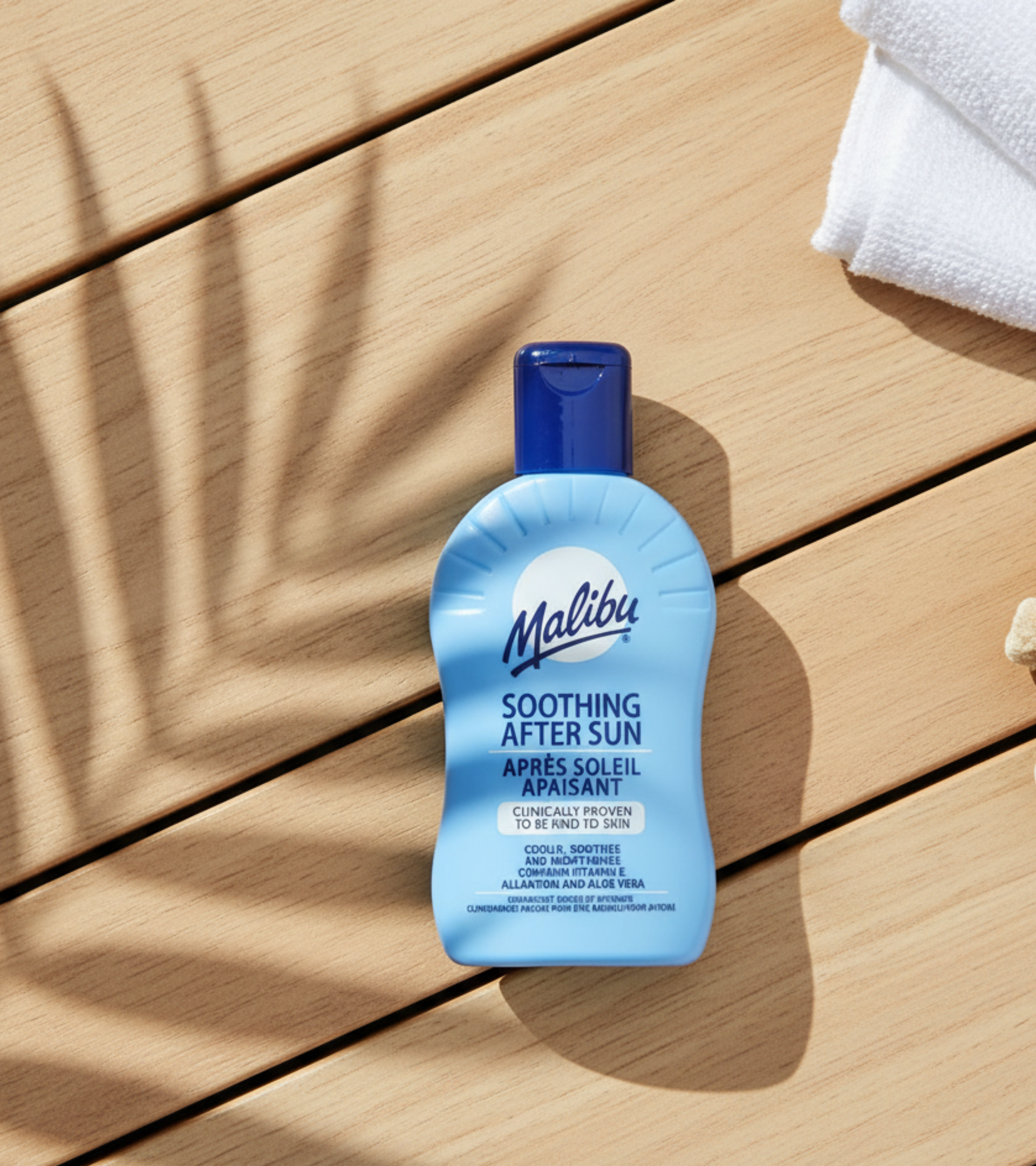 Soothing aloe and moisturisers – calms and hydrates sun-stressed skin.
