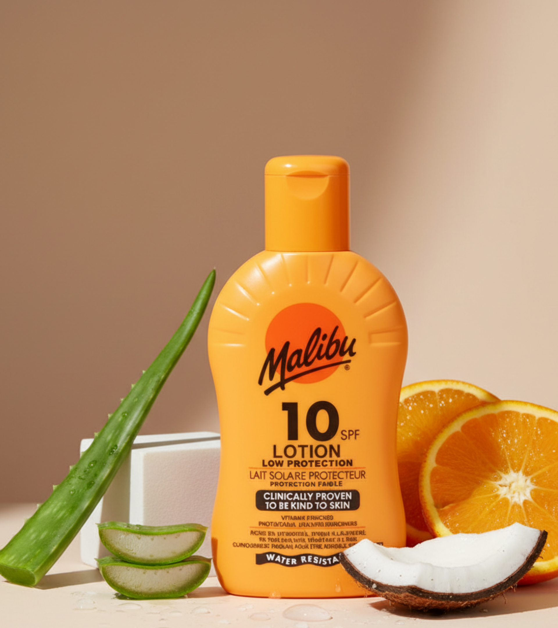 Malibu SPF10 Protective Lotion gives low-level protection from both UVA and UVB rays. It’s photostable, enriched with vitamins, and designed to be kind on skin while offering basic daily defense