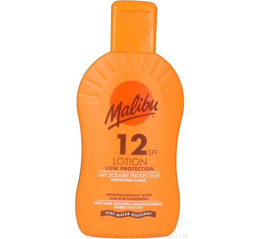 Malibu SPF12 Protective Lotion offers moderate sun protection. The lightweight, non-greasy formula is enriched with vitamins and designed for comfortable everyday wear.