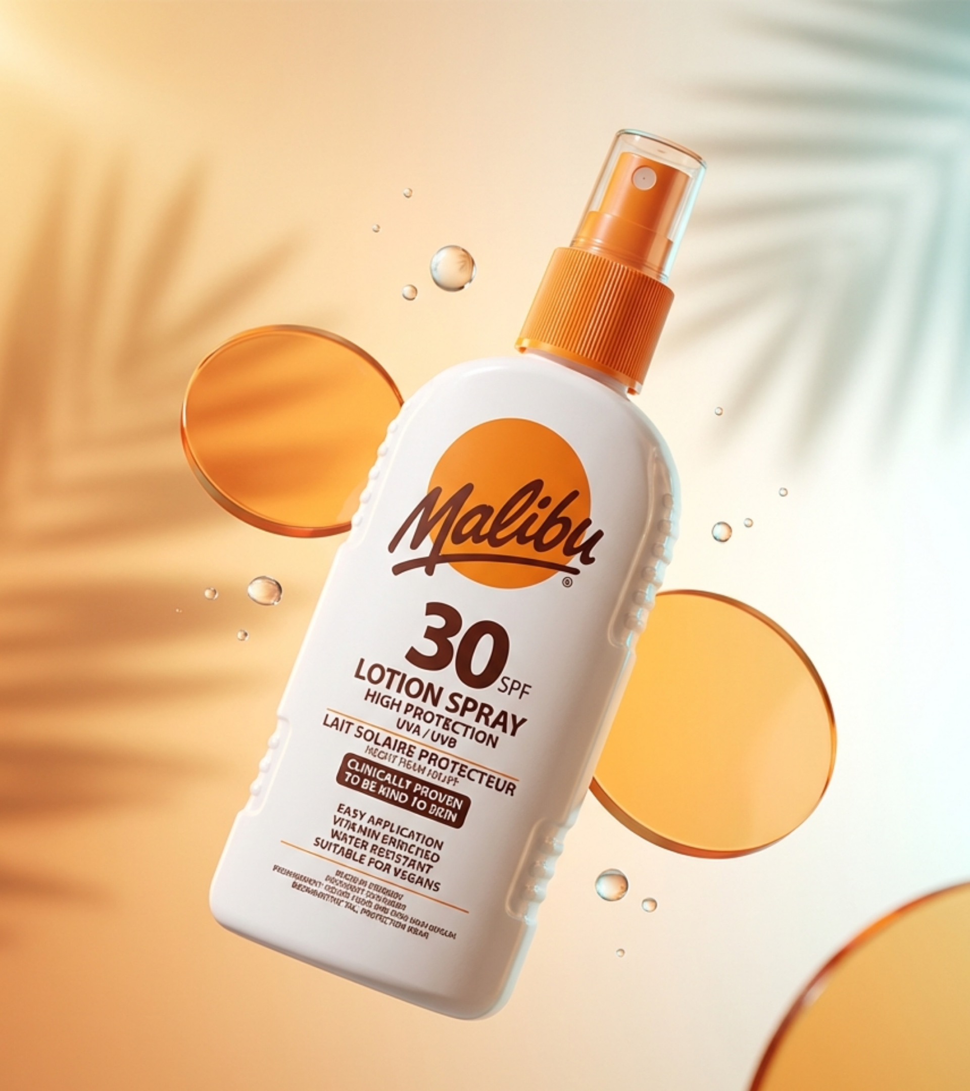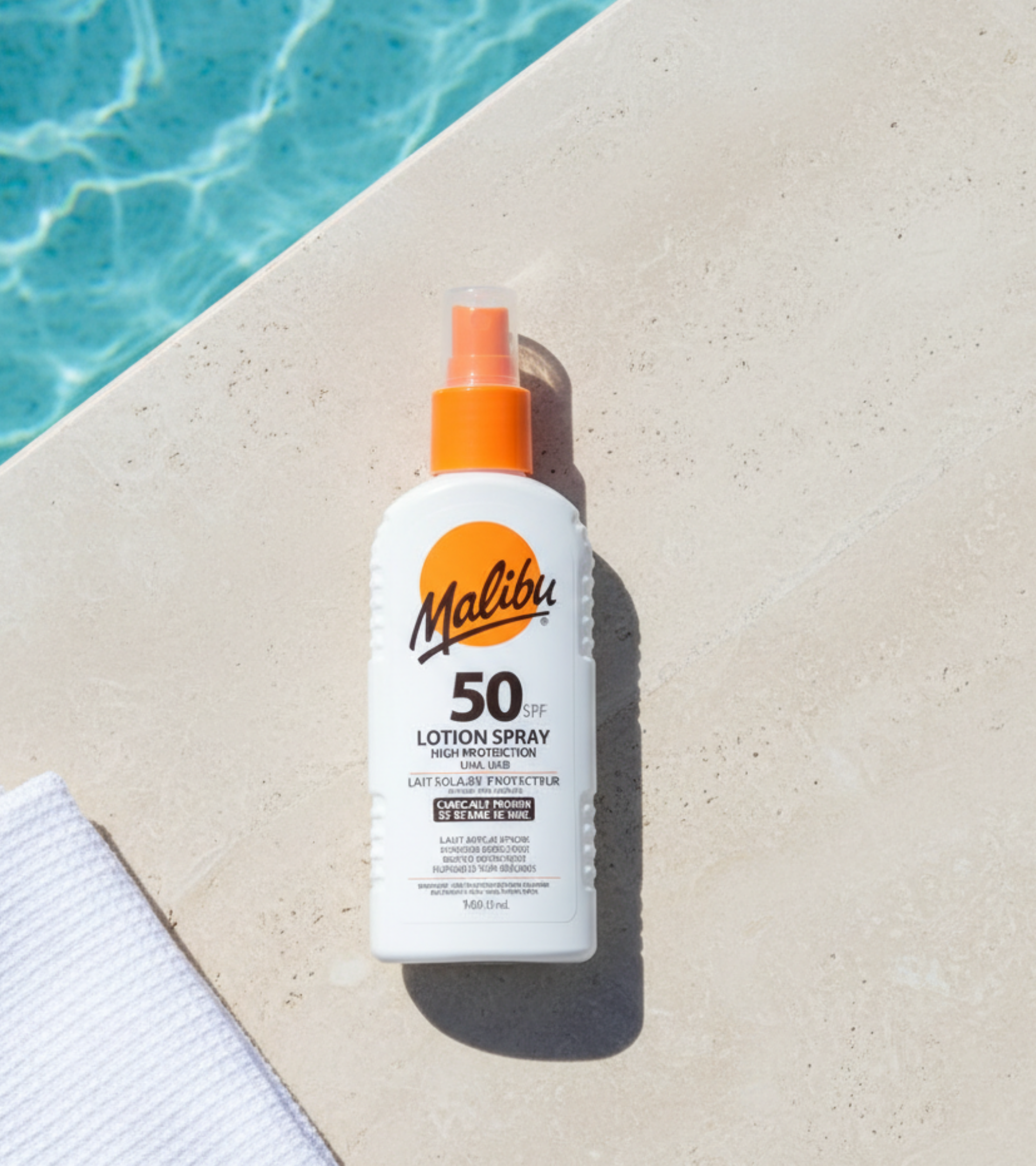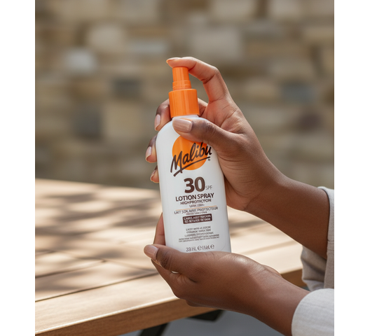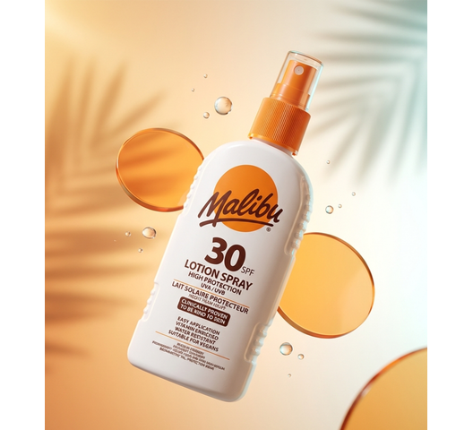Malibu Sun Lotion Spray delivers high-performance sun protection in a convenient, continuous spray format. Its water-resistant, fast-absorbing formula ensures reliable coverage during outdoor activities, sports, and beach days. Designed for comfort, the non-greasy texture feels light on the skin while providing broad-spectrum UVA and UVB defence. Perfect for effortless application and lasting protection, it’s a trusted choice for safe, enjoyable time in the sun.