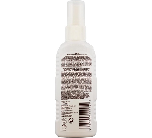 SPF 20 spray protection – suitable for moderate sun exposure.