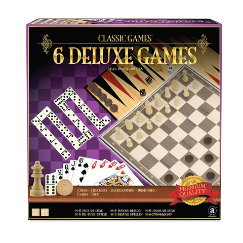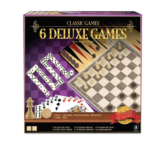 Elevate your game night with the Merchant Ambassador Classic Games Collection – 6 Deluxe Games. Featuring premium real wood pieces and a classic design, this elegant set includes six timeless games in one beautifully crafted collection. Ideal for players who appreciate quality and style.