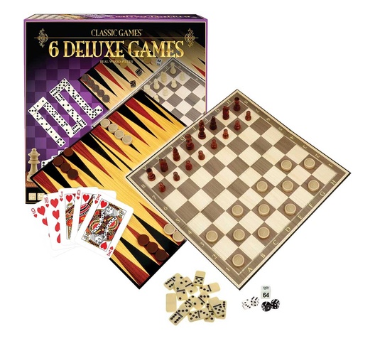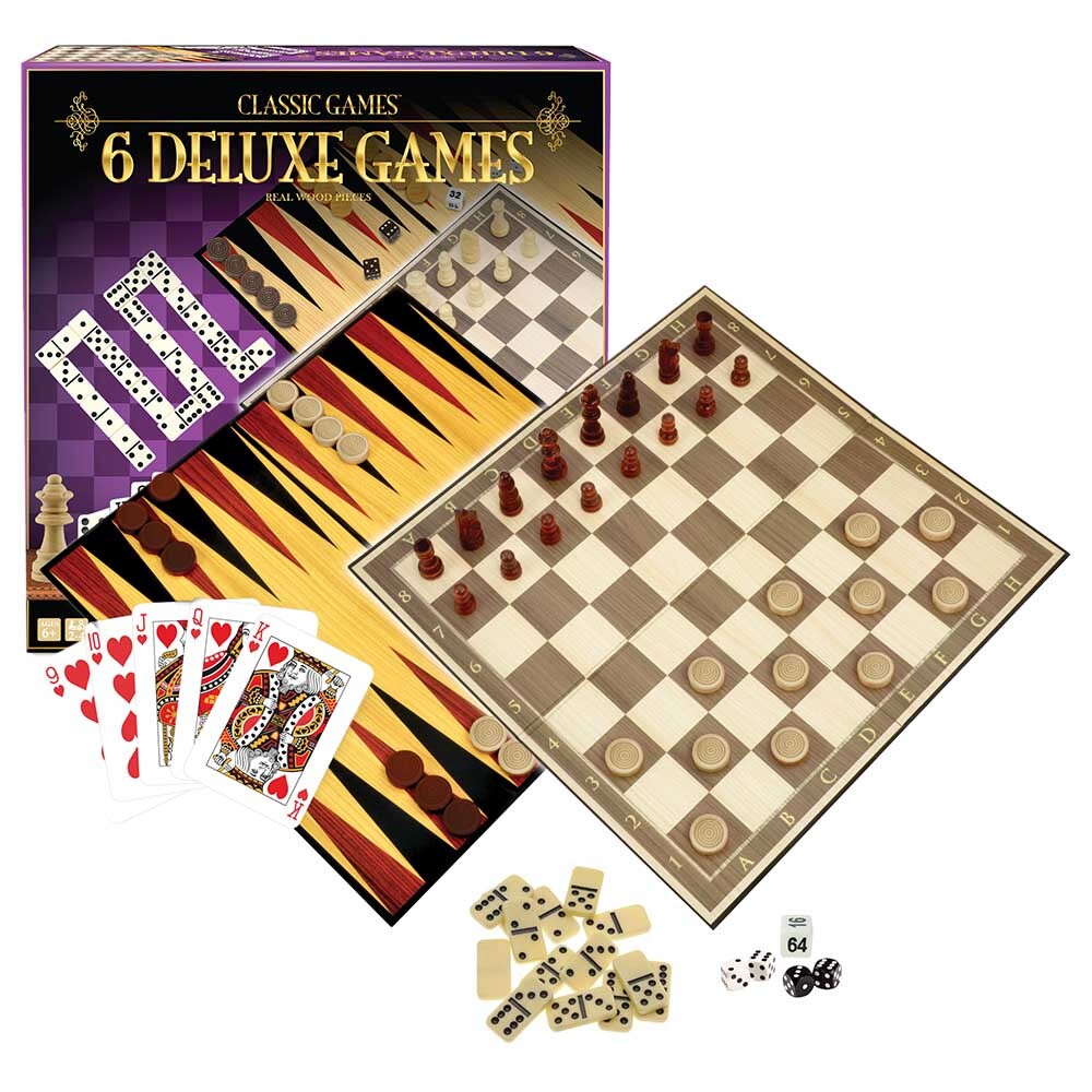 Merchant Ambassador Classic Games Collection – 6 Deluxe Games (Real Wood Pieces)