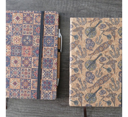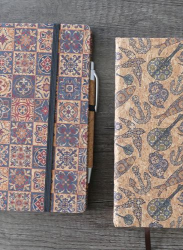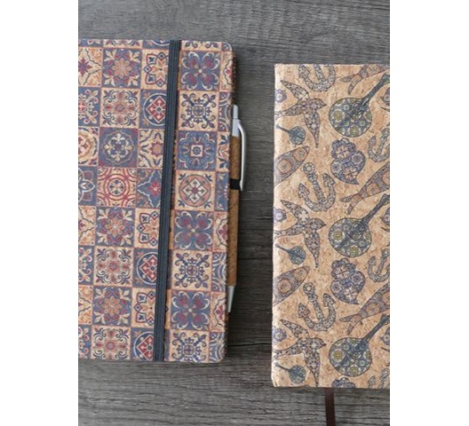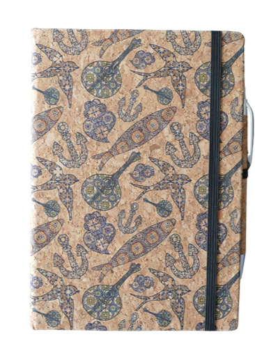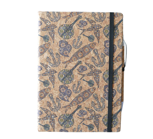 Premium leatherette B5 soft cover notebook with ruled pages on natural paper, with wooden pen. The Cork Collection features unique designs and high-quality materials, making it perfect for professional and personal use. The fish pattern adds a touch of elegance to your note-taking experience.