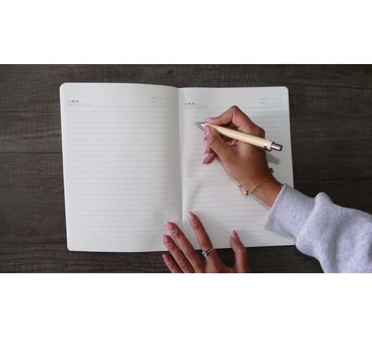 Premium leatherette B5 notebook with ruled pages on natural paper, with wooden pen. The B5 Soft Cover Notebook offers a sophisticated and professional look, perfect for business meetings, classes, or personal journaling. The high-quality paper ensures a smooth writing experience, while the durable cover protects your notes.