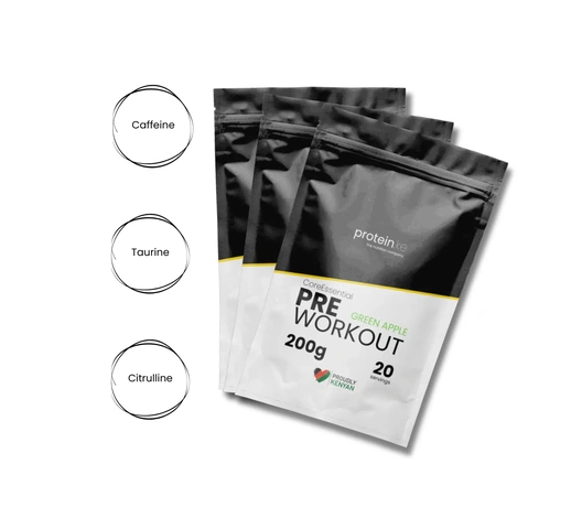Protein.ke’s CoreEssential Pre Workout is engineered to deliver an explosive surge of energy, sharpen mental focus, and heighten endurance — helping you power through even the most demanding training sessions. Whether you're chasing your next PR or pushing through cardio fatigue, CoreEssential Pre Workout gets you in the zone and keeps you there.