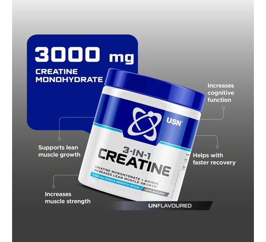 USN 3-in-1 Creatine Monohydrate & Aminos - 200 g, Unflavoured