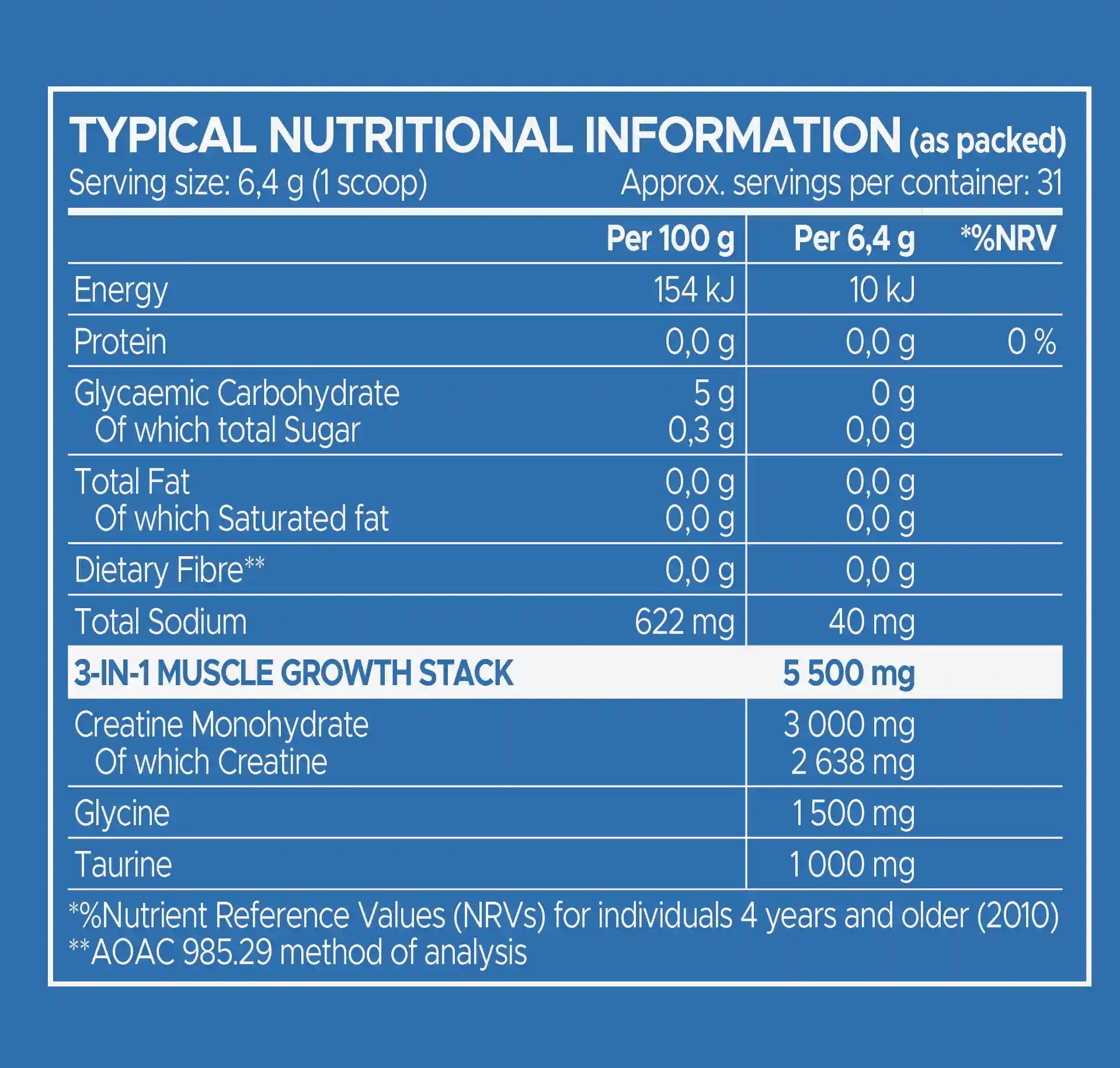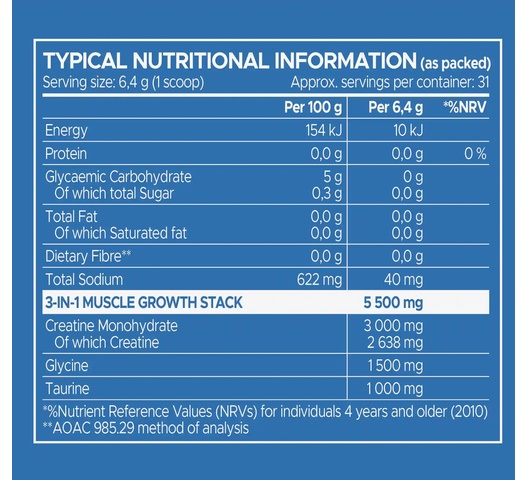 | Other Specifications | Formulated with a triple-action blend of Creatine, Glycine, and Taurine to support not just muscle, but also hydration and overall physical performance. |
