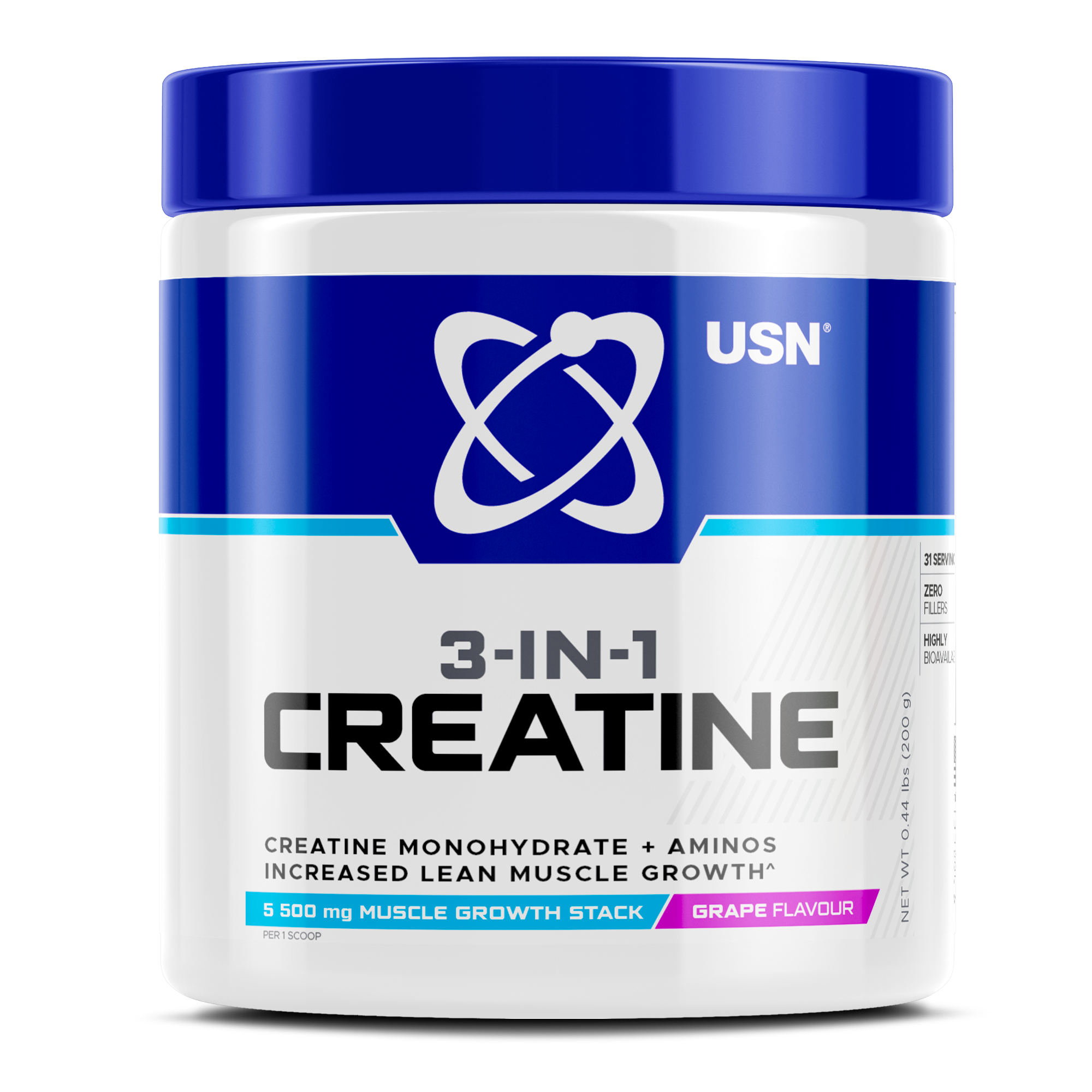 USN 3-in-1 Creatine Monohydrate & Aminos - 200 g, Grape