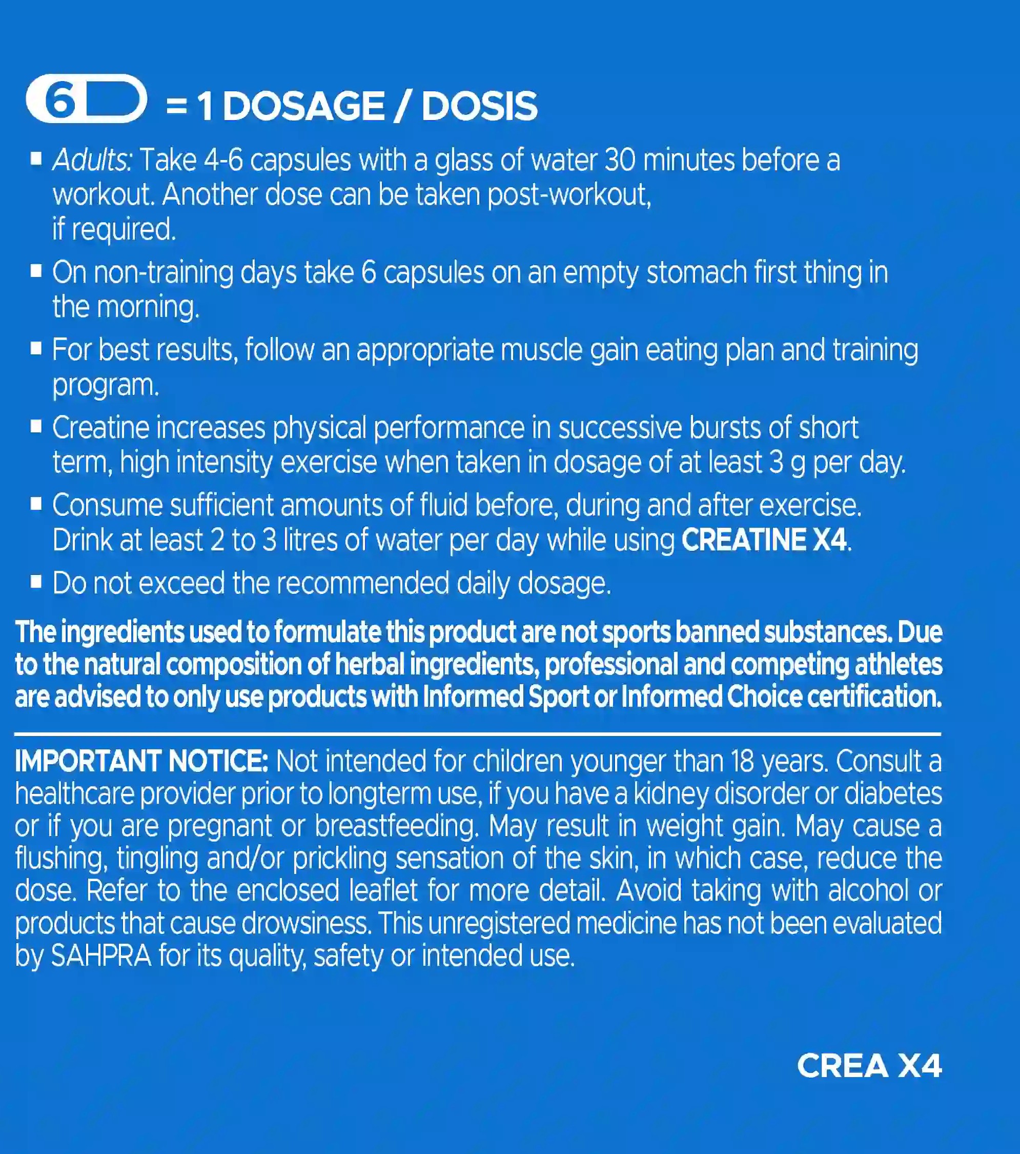 | Health & Safety Information | High creatine dosage. Consult a healthcare professional before use, especially if using any medication or having a kidney condition. |