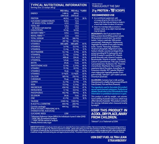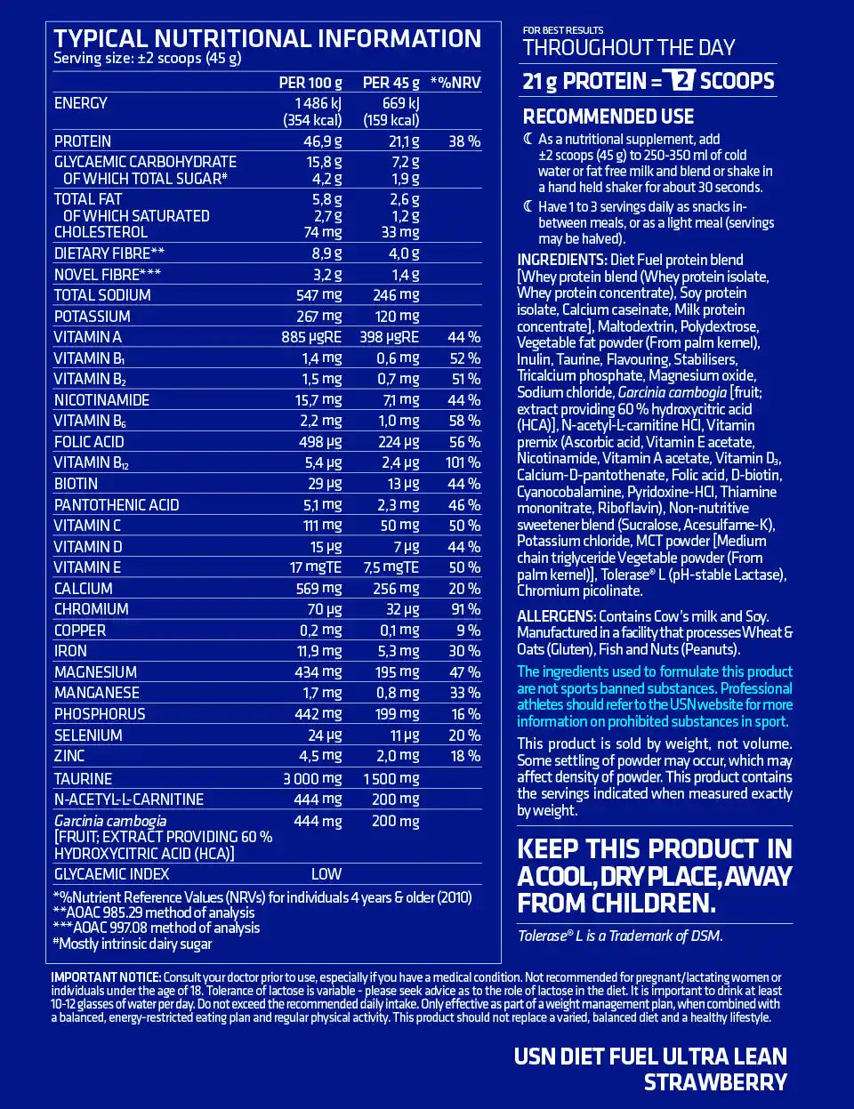 USN Diet Fuel Ultra Lean - 450 g, Strawberry