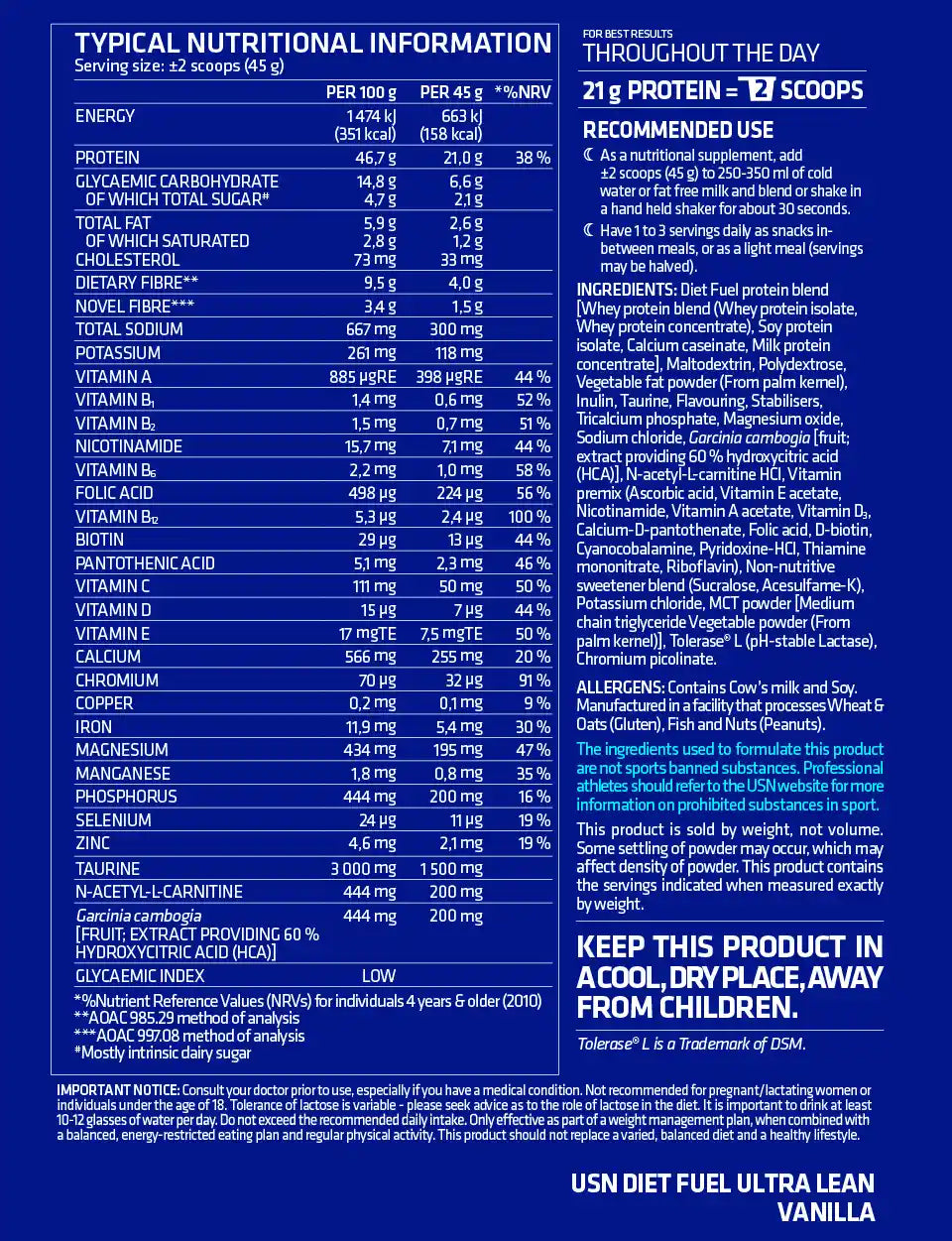 USN Diet Fuel Ultra Lean - 450 g, Vanilla