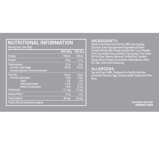 USN Energy Oats Bar Multi-grain Bars - 20 x 35 g, Banana Fudge