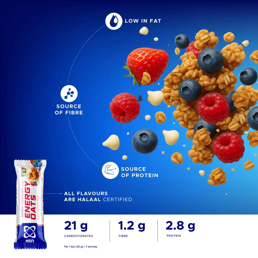 USN Energy Oats Multi-grain Bars offer a premium, high-energy boost perfect for endurance sports or a quick, nutritious snack. These bars are rich in fiber and are a source of protein, delivering lasting energy while keeping you feeling fuller for longer. They are a low-fat option with 0% trans fat, making them an ideal on-the-go fuel source.