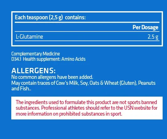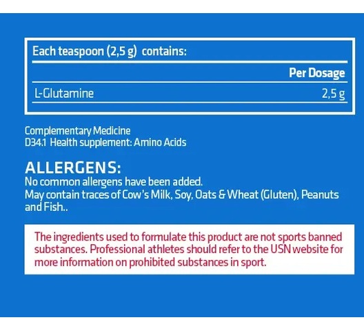 | Ingredients | 100% Pure L-Glutamine (micronized) |